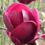 Különlegesen szép virágú Magnolia fajta. Kompakt, piramis alakú lombhullató cserje. Magassága kb. 10 év alatt éri el a 3 métert. 15 cm átmérőjű, tulipánszerű fényes, lila színű virágai áprilisban jelennek meg a növényen, megelőzve a lomb kihajtását. Amennyiben megfelelően nedves a talaj, elszórtan késő tavasszal, kora nyáron is hoz virágot. Savanyú talajba ültessük, a szeles-szélzugos helyet nem kedveli.