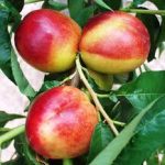 Gyümölcse: nagy, kissé megnyúlt gömb alakú, héja sárga, 80 %-ban élénkpirossal mosott, húsa sárga, a mag körül vörössel márványozott, tömött, kellemes zamatú, magvaváló